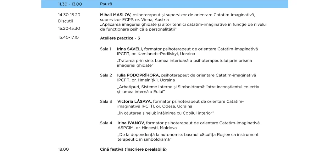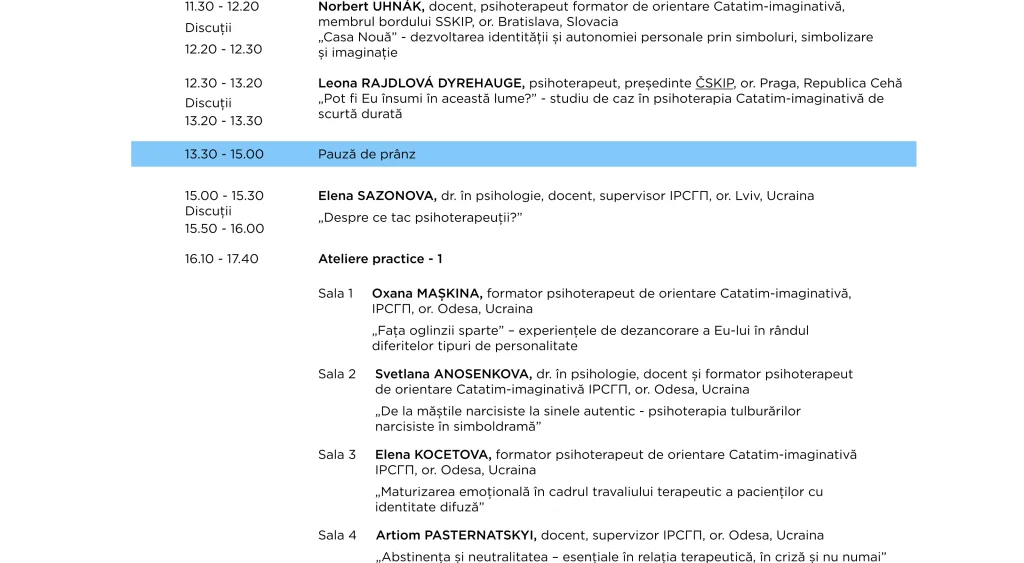 Această a doua ediție a conferinței se concentrează pe explorarea metodelor psihoterapeutice care susțin dezvoltarea unei identități coerente și a autonomiei personale – doi piloni esențiali ai maturizării psihice.